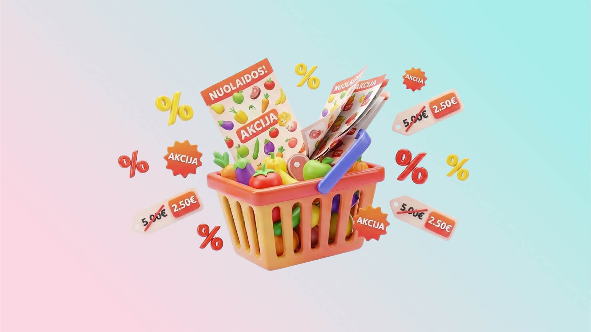 Sutaupykite pirkdami tai, ko jums tikrai reikia. Sistema automatiškai suranda nuolaidas jūsų sąraše esančioms prekėms, taip pat leidžia naršyti visas galiojančias akcijas ir vienu paspaudimu pridėti patikusius pasiūlymus tiesiai į savo pirkinių sąrašą.